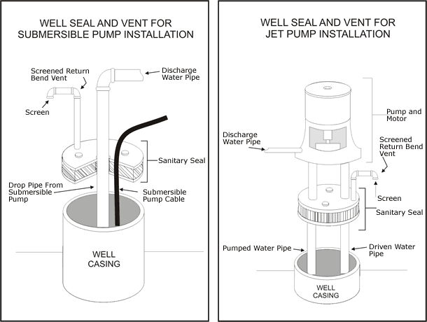 To protect a well supply from surface contamination, a sanitary well seal should be placed on the top of the well. If possible, the pump should be placed on the top of the well, as to prevent water, oil drippings, and incidental contamination from running back into the well. If the sample following the chlorination shows contamination, please contact the lab to determine what types of treatment might be necessary.